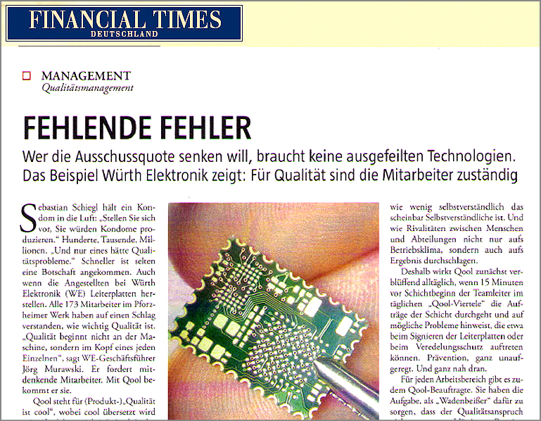 Financial Times Deutschland berichtet über QOOL- Das Management- und Produktionssystem der Würth Elektronik Gmbh & Co. KG. In Zusammenarbeit mit der schiegl gmbh entwickelt.